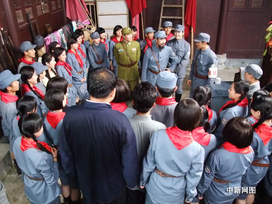 中新網(wǎng)9月18日電 大型建國(guó)獻(xiàn)禮片電視劇《鐵軍之花》(原名《新四軍女兵》)正在橫店拍攝。臺(tái)灣男演員黃維德在劇中飾演一名新四軍戰(zhàn)地服務(wù)團(tuán)的團(tuán)長(zhǎng),一路帶領(lǐng)新四軍女兵忠誠(chéng)為黨效力。