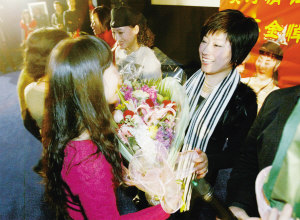 說天津戲迷專業(yè)一點(diǎn)也不為過。會(huì)前放映電影時(shí),就有不少觀眾跟著片中的段落哼唱。放映結(jié)束后,又有幾位觀眾要過話筒搶著亮嗓子,為主角出場做好了預(yù)熱。導(dǎo)演和三位主演登臺(tái)后,觀眾們除了獻(xiàn)花、擁抱外,還上臺(tái)與專業(yè)越劇演員進(jìn)行比拼。幾位戲迷分別選擇鄭國鳳、王志萍和金靜對(duì)唱、學(xué)唱、跟唱,令幾位老師刮目相看。驚訝于天津戲迷專業(yè)程度的導(dǎo)演韋翔東,情不自禁地感嘆道:“難怪說戲在天津不好唱,這回我算是領(lǐng)教了。經(jīng)過了你們的檢驗(yàn),到哪兒我們都不怕了!