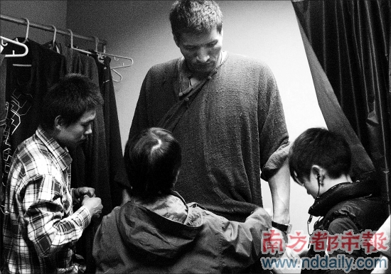 巴特爾的加盟一下讓劇組“如臨大敵”,除了趕緊訂購大床外,化妝組還為他連夜試妝,定做了數(shù)套衣服。但試妝過程還是困難連連,因為巴特爾實在太高,化妝師的身高往往只到他的腰間。巴特爾也是非!熬o張”,擔心把劇組的椅子坐壞,把化妝品用完:“我這樣的你們不是要用兩倍的化妝品?”