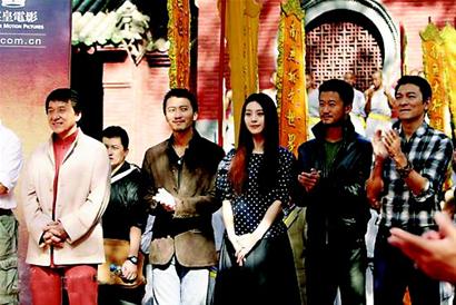 昨日現(xiàn)場,在成龍、劉德華、謝霆鋒、范冰冰等明星悉數(shù)亮相后,現(xiàn)場的嘉賓和武校的學(xué)生們都紛紛圍上去想和偶像近距離接觸,場面一度失控。成龍一出場就發(fā)揮他的“大哥”本色,呼吁現(xiàn)場人士維持秩序,而劉德華也呼吁大家小心安全。《新少林寺》在今年初就已經(jīng)開始籌備,在確定了成龍、劉德華二位影壇巨星加盟之后,女主角卻遲遲定不下來。曾經(jīng)一度傳出張柏芝、周迅等多位一線女星爭相加盟,競爭異常激烈。昨日范冰冰的出現(xiàn),結(jié)束了女主角的懸念。
