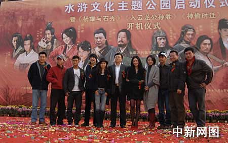 中新網(wǎng)11月2日電(蒲波) 昨天(1日)下午,水滸文化主題公園啟動儀式暨2009年大型系列數(shù)字影片“水滸人物譜”之“楊雄與石秀”、“入云龍公孫勝”、“神偷時遷”等開機(jī)儀式在山東梁山舉行!坝兴疂G情結(jié)”的山東導(dǎo)演劉信義表示,“水滸人物譜”不一定會有108部,但計劃至少拍攝五六十部。