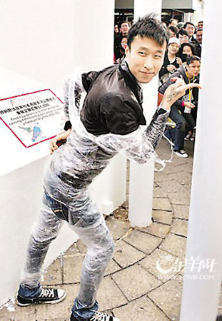活動在尖沙咀碼頭廣場的五枝旗桿進(jìn)行,要求應(yīng)征者以自創(chuàng)的搞笑方式觸碰五枝旗桿,吸引數(shù)百人來到活動現(xiàn)場應(yīng)征。活動眾人均以奇裝異服上陣,包括“人妖GaGa”、“保鮮男”及“男版鄧麗欣”等搞怪族登場,也有人模仿星爺代表作里的一些經(jīng)典配角造型,如“醬爆”、“如花”等,其中有多名參賽者不約而同模仿“如花”摳鼻,姿勢一個比一個夸張,現(xiàn)場笑聲不斷。