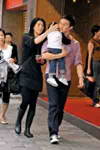 當張智霖和太太、兒子見面后,袁詠儀發(fā)現(xiàn)有記者在場,面色即變得非常緊張,更吩咐兒子不要望向鏡頭,其后兩人帶兒子上保母車,交由工人代為照顧,二人即走入商場。