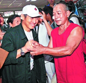 李連杰8月13日起帶著物資深入臺灣災(zāi)區(qū),為備受超級臺風(fēng)莫拉克摧殘的臺灣中南部災(zāi)民及義工打氣。前日他繼續(xù)探訪災(zāi)區(qū),有災(zāi)民向他哭訴:“我家全沒了!”李連杰趕緊握住他的手給予安慰,場面感人。不過也有輕松的時候,李連杰所到之處,大批災(zāi)民和義工均蜂擁上前看熱鬧,許多年輕女義工更是尖叫著將他團(tuán)團(tuán)圍住,李連杰只能笑說:“這么圍著,我怎么探望災(zāi)民啊!