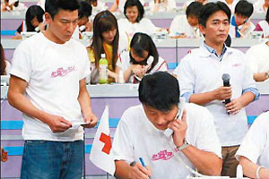 據(jù)“聯(lián)合早報”消息,香港演藝圈為了幫助臺灣受災(zāi)民眾盡快重建家園,積極動員,與臺灣藝人聯(lián)手舉辦《88水災(zāi)關(guān)愛行動》。劉德華水災(zāi)后第一時間飛抵臺灣賑災(zāi),返港后更是召集200位藝人,趕工錄制“88水災(zāi)關(guān)愛行動”主題曲《滔滔千里心》。擔(dān)任總召的他,一下飛機(jī)便直奔活動現(xiàn)場,強(qiáng)打精神緊盯各個環(huán)節(jié),不但親手寫大字報,更扯破喉嚨指揮全場。