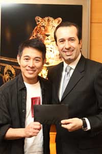 李連杰昨亮相品牌店名店2小時(shí),并從品牌店的新加坡及馬來西亞董事總經(jīng)理Christopher Kilaniotis手中接過支票;據(jù)悉,Cartier在本地共籌得3萬新元善款,馬來西亞則籌得3萬馬幣(約1萬2200新元),整數(shù)4萬2200新元支票昨交給李連杰。