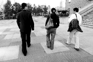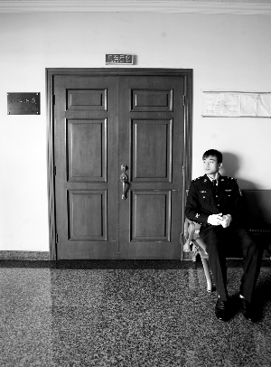 8時(shí)40分,本案7名被告人的家屬和辯護(hù)律師聚集到法院傳達(dá)室,辦理旁聽(tīng)及代理辯護(hù)手續(xù)。臧天朔的家屬是一個(gè)中年男子,他的律師也不是記者熟悉的“大腕”。院方的安檢比較嚴(yán)格,除了禁止攜帶相機(jī)、錄音筆,連手機(jī)都要求不能帶入法庭。