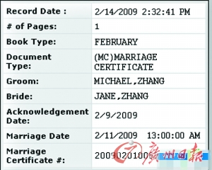 有媒體爆料,在美國(guó)新澤西州網(wǎng)站發(fā)布的結(jié)婚登記信息顯示,張靚穎已與英文名“MICHAEL ZHANG”的男子注冊(cè)結(jié)婚。這位神秘男友邁克的真實(shí)身份,流傳了兩個(gè)版本。一是張靚穎合作多年的經(jīng)紀(jì)人馮科,但馮科的真實(shí)英文名“MICHAEL FENG”,與登記的信息有一些出入。二是這位“MICHAEL ZHANG”是位富二代,中文名張海濤自小隨做服裝貿(mào)易生意的父母移居美國(guó),家族身家數(shù)十億,也是精通20多種樂器的“音樂狂才”。有人爆是在某國(guó)際音樂節(jié)上,經(jīng)譚盾介紹,張靚穎認(rèn)識(shí)了這位富二代,而該男友更暗地幫助張靚穎主攻虎年央視春晚。兩人更在今年情人節(jié)在美國(guó)新澤西州登記結(jié)婚。