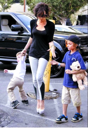 上周五,剛從倫敦返回洛杉磯的貝嫂就化身“慈母”,帶著4歲的克魯茲和7歲的羅密歐,前往好萊塢北部一家著名的酸奶屋買冰激凌。不過(guò)貝嫂這次一改往日的精致妝容和得體衣著,梳著有些凌亂的頭發(fā),穿著最低調(diào)的簡(jiǎn)約款黑色上衣和灰色細(xì)腿褲,領(lǐng)著兩個(gè)孩子在街上走。如果脫掉腳下那雙具有貝嫂招牌裝扮的、大于10厘米的高跟鞋的話,維多利亞也不過(guò)是個(gè)清瘦一點(diǎn)的家庭婦女罷了。