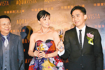 中新網(wǎng)11月30日電 繼不丹大婚之后,梁朝偉劉嘉玲29日首次回家鄉(xiāng)蘇州“探親”,并高調(diào)宣布購入總值超過1600萬人民幣的豪宅“華麗家族.太上湖”,這是蘇州太湖旁邊一座三層樓高的現(xiàn)代經(jīng)典主義獨棟別墅, 據(jù)稱該樓盤的老板夫婦為其多年好友,因此,劉嘉玲也給足老友面子,攜夫君梁朝偉共同出席樓盤揭幕儀式。