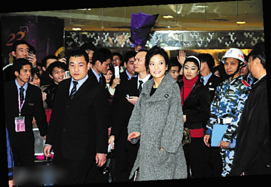 11月20日,趙薇現(xiàn)身在廣州舉行的《花木蘭》首映禮,因?yàn)椤吧碓小币阎亓耸喟醯乃,?dāng)晚只好穿著松身黑裙遮住肚子。之后在晚上的影院活動(dòng)中,趙薇索性全程穿著長外套。