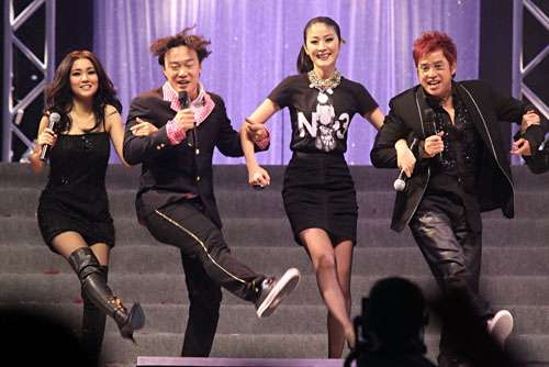 中新網(wǎng)12月4日電 環(huán)球眾歌手前晚在香港舉行演唱會(huì),出席者有譚詠麟、李克勤、陳奕迅、謝安琪、陳慧琳、孫耀威等,謝安琪更是不避嫌在臺(tái)上挽著陳奕迅大唱大跳,但兩人終究不敢正面交流,只是在合唱時(shí)才有眼神接觸。