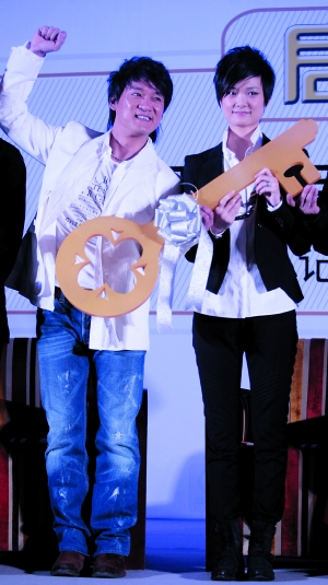 周華健以擺渡人音樂室制作人身份亮相發(fā)布會,他抱上了一把金鑰匙模型送給李宇春,還講起了與李宇春的淵源,稱當(dāng)年一眼就看中她能奪冠,“她還在比賽時我就關(guān)注過那些沸沸揚揚的新聞,有一次在天津,有個記者拿著十強候選人的圖來給我看,我當(dāng)時憑外表點中了春春!