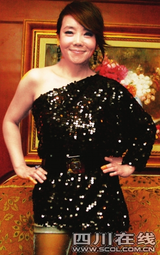 黑色斜露肩亮片小裙,高高挽起的頭發(fā),辛?xí)早骺雌饋韹趁囊廊。昨晚,曾以《領(lǐng)悟》、《味道》等打動一代人心弦的“療傷系情歌天后”辛?xí)早鱽淼匠啥荚谔禊Z湖半島會所,為全球通VIP俱樂部的會員獻(xiàn)歌。