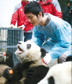 昨日,由臥龍中國(guó)保護(hù)大熊貓研究中心精心遴選的10只大熊貓,從該中心雅安碧峰峽基地啟程前往助陣上海世博。作為“中國(guó)保護(hù)大熊貓研究中心熊貓愛(ài)心大使”的黃曉明,同時(shí)又是成都和雅安的熊貓愛(ài)心大使,以及上海世博會(huì)志愿者宣傳大使,特意向劇組告假趕到雅安現(xiàn)場(chǎng)。此行他不僅是為了宣傳保護(hù)大熊貓和世博,最重要的是為了來(lái)替自己的一雙“兒女”送行。原來(lái)由他出資百萬(wàn)元認(rèn)養(yǎng)的地震后出生的全球首對(duì)雙胞胎大熊貓“平平”、“安安”這次就將以“哥哥”、“姐姐”的身份帶領(lǐng)另外8只熊貓遠(yuǎn)赴上海世博。(春城晚報(bào))