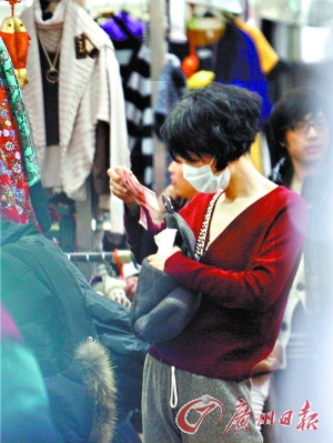 當(dāng)天下午兩時(shí)半,記者在東三環(huán)附近某服裝市場外閑逛,突然發(fā)現(xiàn)王菲的座駕正在停車場尋找停車位。沒多久,王菲穿著一件長長的羽絨服、戴著白口罩從車后座上走了下來。在等司機(jī)停好車后,王菲一行進(jìn)入服裝市場一層,一進(jìn)門便奔著買民族服飾的區(qū)域而去。最后王菲看中了一件帶盤扣的花團(tuán)圖案薄大衣。