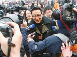 昨日,全國政協(xié)十一屆三次會(huì)議在北京開幕,文體明星代表成為追訪的焦點(diǎn)。楊瀾、央視名嘴朱軍、崔永元、《新聞聯(lián)播》播音員李瑞英、演員陳道明、著名歌唱家關(guān)牧村、韓紅、導(dǎo)演馮小剛、體育明星劉翔遭圍堵采訪。劉翔在政協(xié)會(huì)議上遭圍堵露求救表情,離場時(shí)學(xué)聰明跑步開溜,讓記者們一路狂追。(春城晚報(bào))
