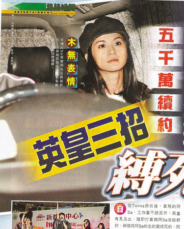 在Twins拆伙期間,單飛的阿Sa工作量不跌反升。當(dāng)時(shí)不僅有其他唱片公司打算高薪挖角,而且她與鄭中基仍是夫妻關(guān)系,有傳鄭中基有意撬她到金牌組成夫妻檔賺錢,在種種“誘惑”之下,英皇與阿Sa的新合約問(wèn)題一直處于拉鋸階段,久久未能成事。 現(xiàn)在“Sa基”婚變,英皇趁機(jī)再談續(xù)約。為了讓阿Sa下定決心,英皇準(zhǔn)備以5000萬(wàn)港元的天價(jià)利誘阿Sa,并承諾將力捧她,在Twins的復(fù)合演唱會(huì)后讓阿Sa再次單飛工作。有知情人士說(shuō):“阿Sa本來(lái)就和公司關(guān)系非常好,現(xiàn)在和鄭中基劃清界線后,更加要搏命賺錢。公司給出那么優(yōu)厚的條件,阿Sa很難不心動(dòng)!