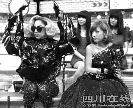 LadyGaGa在朝日電視臺(tái)的《MusicStation》中擔(dān)任表演嘉賓,她以一襲由日本設(shè)計(jì)師操刀的蝙蝠裝登場,氣勢逼人。恰逢步姐上節(jié)目宣傳新專輯《搖滾馬戲團(tuán)》,GaGa被安排與步姐并排而坐,她不僅自爆睡覺時(shí)什么也不穿,又透露自己喜歡在各國尋找獨(dú)特的表演服裝:“這套衣服出自和GaGa姐相比,步姐成“小兒科”