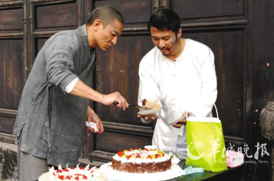 在今年的金像獎上捧獎后,謝霆鋒日前趕返橫店繼續(xù)開工,而導(dǎo)演陳木勝和劇組特別在《新少林寺》的拍攝場地為他準(zhǔn)備了一個迷你慶祝會,并送上兩個分別寫上 “雙喜”和“臨門”的蛋糕,祝賀他贏得最佳男配角獎之余,還即將第二次榮任爸爸。不過,慶祝會上最令謝霆鋒雀躍的是,他的偶像劉德華專門為他打氣,勉勵他明年要向最佳男主角獎項邁進。