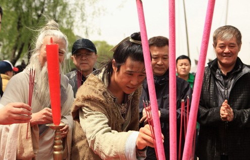 昨天上午,由博納影業(yè)、本山傳媒和延平工作室共同出品的賀歲新片《大笑江湖》在無錫影視基地正式開拍。博納影業(yè)總裁于冬和導(dǎo)演朱延平、武術(shù)指導(dǎo)程小東攜主演趙本山、小沈陽、程野出席了開機(jī)拜神儀式。隨著幾位主演正式投入拍攝,趙本山和小沈陽在片中的全新形象也正式曝光。扮演小鞋匠的小沈陽的扮相一改《三槍拍案驚奇》中的艷麗形象,變身古代帥氣熟男。據(jù)悉,小沈陽這次不只耍嘴皮子功夫,還要亮出自己二人轉(zhuǎn)底子的“真活兒”,拍攝大量的動作戲。