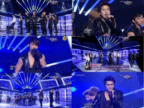 據(jù)《朝鮮日報》消息,Super Junior在5月21日播出的韓國KBS二臺音樂節(jié)目《Music Bank》中,憑借第四張正規(guī)專輯主打歌《美人啊》排在了K-排行榜第一位。這距他們本月14日通過《Music Bank》復(fù)出正好是一周的時間。