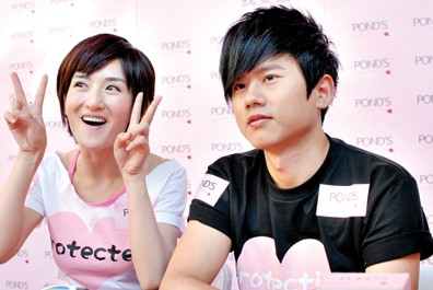 在今年初的某場(chǎng)頒獎(jiǎng)典禮上,謝娜和張杰十指緊扣同臺(tái)亮相,并以男女朋友相稱(chēng),這是從“快男”比賽開(kāi)始便傳出戀情的兩人在經(jīng)歷兩年的地下戀后首度“見(jiàn)光”。此后,兩人便一發(fā)不可收地到處秀恩愛(ài)。昨日的“反UV保護(hù)令”發(fā)布現(xiàn)場(chǎng),兩人再度將“秀愛(ài)”進(jìn)行到底。謝娜在臺(tái)上嬌嗔地說(shuō):“張杰就是我心目中的完美男生,他就是很完美,各方面都很完美!倍鴱埥軇t在臺(tái)上肉麻地宣布:“娜娜是我的女朋友,我不允許我所愛(ài)的人受到任何傷害,這個(gè)夏天我要給娜娜最杰出的保護(hù)!痹(huà)音剛落,只見(jiàn)謝娜開(kāi)始用手輕擦眼睛,以一句“是的,我們會(huì)一直走下去”作為愛(ài)的回應(yīng)。