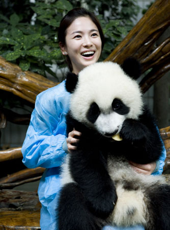 成都大熊貓基地方面表示:“去年因四川大地震,熊貓的另一個棲息地——臥龍基地被毀,因此正在募集重建基金,而這次宋慧喬擔任愛心大使,所以希望能夠得到中國和亞洲其他國家的幫助!