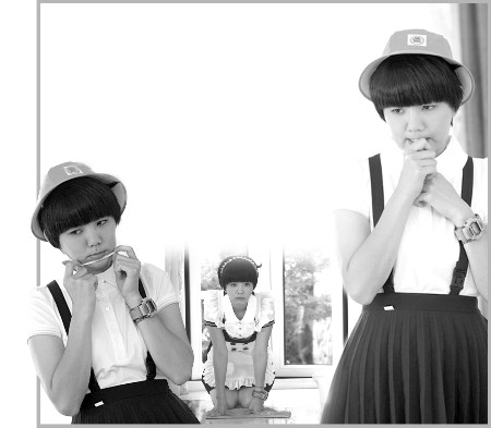 劇中有一場(chǎng)戲表現(xiàn)的是楊果被齊媽媽數(shù)落時(shí),想象自己變成了櫻桃小丸子的可憐模樣。當(dāng)換完裝的ELLA 從樓梯上走下來(lái)時(shí),全場(chǎng)就HIGH翻了:黃色帽子,白色小圓領(lǐng)襯衣,深藍(lán)色百褶背帶裙,白襪黑鞋,“。∈菣烟倚⊥枳!”“哇!好可愛(ài)哦!”現(xiàn)場(chǎng)一片贊嘆。