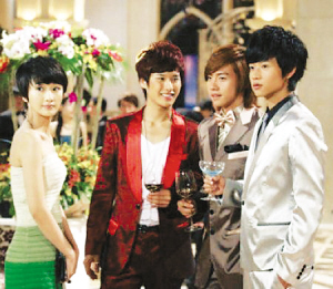 雖然《一起來看流星雨》從開拍時就標榜自己是“原創(chuàng)”的勵志劇。但從它的簡稱“流星雨”中,人們就可察覺到它和當年F4主演的《流星花園》扯不斷理還亂的關系。該劇從人物個性、情感關系、劇情發(fā)展、橋段設計到語言細節(jié),處處都有《流星花園》的影子。劇中端木磊扶起垃圾桶的回眸一瞥、喜歡獨自待在天臺的癖好、精通樂器同時喜歡比自己年長的女人……都是在拷貝《流星花園》。女主角楚雨蕁幾乎就是臺灣版《流星花園》中杉菜的翻版,就連兩位女主角被捉弄的方式都如出一轍。