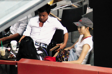 當(dāng)天蔡少芬頭戴一頂棒球帽,白T恤配長裙的裝扮令其看上去非常有活力;蛟S是由于愛情的滋潤,雖然當(dāng)天蔡少芬并沒有化妝,不過依然顯得非常漂亮。他們走進(jìn)一家咖啡廳,落座后張晉侃侃而談,蔡少芬則一臉愛意地注視他。說到高興時,張晉抬起左手指指點點,蔡少芬馬上用手握住老公的胳膊,臉上滿是關(guān)心的表情,兩人看上去就像熱戀的情侶般默契十足,恩愛非常。