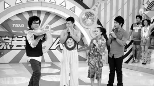 “連轉(zhuǎn)手帕”、“模仿大猩猩”、“翻跟斗摔跤”……二人轉(zhuǎn)舞臺上的經(jīng)典絕活,被趙本山的弟子張小飛、賀美玲、王金龍和毛毛原汁原味地呈現(xiàn)在臺灣的綜藝節(jié)目當中,震驚了寶島的觀眾,簡單的笑聲和尖叫聲已經(jīng)不足表達他們的驚喜,見多識廣的臺灣綜藝名嘴康康和歐弟甚至都大嘆佩服。
