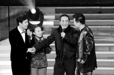 眼看唱主題歌的事要黃了,小沈陽和毛毛終于使出最后一個殺手锏:請出自己的舅姥爺,這舅姥爺并不是大病初愈的趙本山,正是《三槍拍案驚奇》的導(dǎo)演張藝謀。幾乎“絕跡”綜藝類節(jié)目,這次也算是為新片獻出了綜藝“處女秀”。至于為什么成了小沈陽和毛毛的舅姥爺,張藝謀的解釋是,我和丫蛋的爺爺(指趙本山)是好朋友。∮辛司死褷?shù)闹С,小沈陽和毛毛接下來的表演更賣力了,他們和《星光大道》的選手李玉剛等,進行了一系列的PK,可最后的結(jié)果還是不分伯仲?粗@兄妹倆不停的鬧騰,張藝謀最后發(fā)話了:“小沈陽,你也別在人家《星光大道》上胡鬧了,就跟我走吧,不看僧面看佛面,看在丫蛋她爺爺?shù)拿嫔,《三槍拍案驚奇》的主題歌,就讓你唱吧!”