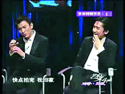 當(dāng)梁朝偉一上場,朱軍便說:“上次錄《無間道》時你和劉德華一起欺負我,這次就你一個人,我終于可以報仇了!倍撼瘋t很不解地說:“上次是你欺負我們吧。”