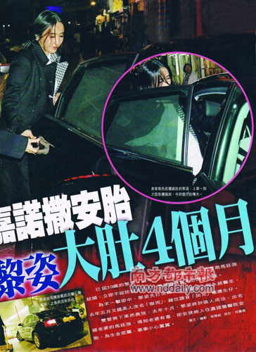 為生仔改名“黎珈而”的黎姿自成功“加兒”后,一直安心養(yǎng)胎甚少露面。昨日新上市的《壹周刊》又爆新料,雖然大部分時(shí)間都留家安胎,不過(guò)一向幫忙打理弟弟黎嬰美容診所生意的黎姿上月底也現(xiàn)身視察公司事務(wù),全程都由司機(jī)接載。一身黑色長(zhǎng)外套裹住的黎姿,在上車一刻因外套揚(yáng)起露出白色打底衫,四個(gè)月的“大肚照”終掩不住,曝光了!而一向?qū)枳颂蹛?ài)有加的馬廷強(qiáng),聽(tīng)說(shuō)自老婆懷孕后也變成緊張大師,減少出外應(yīng)酬抽更多時(shí)間陪黎姿在家安胎。