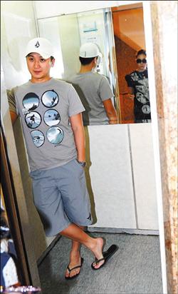 戴著帽子的黃柏俊,穿著T-Shirt、短褲,腳踩夾腳拖鞋,完全看不出富家公子哥的驕氣,看到記者的鏡頭,黃柏俊顯得有些尷尬,但眼見(jiàn)無(wú)處可躲,索性露出笑容,大方讓記者拍照,跟在后頭的侯佩岑則是一個(gè)箭步,閃進(jìn)電梯里,記者問(wèn)她何時(shí)結(jié)婚?一身時(shí)尚打扮的她笑而不答。