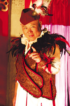 內(nèi)地全新翻拍的文化喜劇《三笑之才子佳人》4月底上映在即,昨日片方發(fā)布了一組新鮮曝光的劇照。其中郭德綱在片中飾演的唐伯虎造型頗令人意外。他領(lǐng)銜主演的唐伯虎,雖為風(fēng)流才子,長(zhǎng)袍加身但仍然極少戴書(shū)生帽,而仍然以招牌光頭來(lái)演繹這個(gè)“憨厚版唐伯虎”。但影片一開(kāi)始,這個(gè)“憨厚版唐伯虎”由于需要以歌傳情,遇見(jiàn)秋香時(shí),正在舞臺(tái)上表演個(gè)人演唱會(huì),因此這一幕的造型頗為突破:只見(jiàn)郭德綱打扮成現(xiàn)代版搖滾歌手模樣,頭上還帶著長(zhǎng)長(zhǎng)的雉尾做成的帽子,更有一種歐洲宮廷味道。郭德綱對(duì)這一搞怪造型頗為滿意,說(shuō):“服裝設(shè)計(jì)時(shí)融入了很多加勒比海盜的靈感,狂野的造型,說(shuō)明有一種文人也瘋狂的感覺(jué)”! ●R 彧