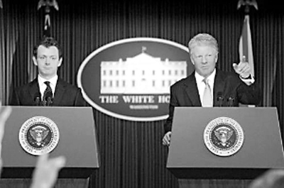 《特殊關(guān)系》是作家彼得·摩根描述英國前首相布萊爾政壇生涯的第三部曲,前一部片《女王》讓海倫·米蘭登上奧斯卡影后寶座。三度演布萊爾的英國男星邁克·辛,與丹尼斯·奎德都是入圍艾美獎最佳電視電影男主角的熱門人選。為了避免情節(jié)引起爭議,一幕克林頓坦言與萊溫斯基有婚外情的片段在正式播出的版本中被刪剪。原本克林頓一角的首席人選是丹尼斯·奎德的前情敵羅素·克洛,丹尼斯笑言自己以往曾和克林頓打過高爾夫,近距離觀察過本尊的神態(tài)。劇組為他準(zhǔn)備了特制戲服,讓他看來較胖,他卻選擇要努力加餐飯增肥,自嘲每天張開嘴就是吃。泰漁