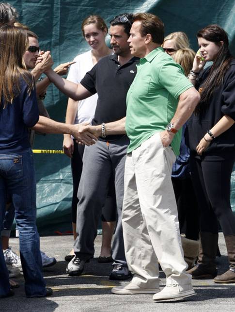中新網(wǎng)5月22日電 好萊塢經(jīng)典代表之一的《終結(jié)者》系列第四部《終結(jié)者2018》即將在6月9日公映。日前,前幾部的主演、“終結(jié)者”的標(biāo)志性人物阿諾.施瓦辛格在百忙中看了這部影片,并攜夫人會(huì)見了影片的新主演——“蝙蝠俠”克里斯蒂安.貝爾及其夫人,交流影片看法,對(duì)貝爾的表演倍加稱贊。