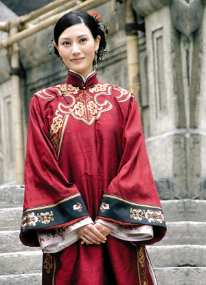 昨天,婚后首度拍戲的李嘉欣,穿一身華麗而又低調(diào)的酒紅色古裝出現(xiàn),發(fā)髻盤(pán)起,淺笑吟吟,站在“舊中環(huán)”的石階上,回眸一笑百媚生。
