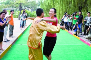 昨日,特奧形象大使章子怡來(lái)到了通州區(qū)培智學(xué)校,與近百名智障學(xué)生共同參與了特奧手拉手活動(dòng)。在互動(dòng)環(huán)節(jié)中,章子怡與學(xué)生們進(jìn)行足球與地?cái)S球的比賽。最終由她率領(lǐng)的隊(duì)伍以2比1獲得了勝利,獲勝后章子怡與小朋友擁抱慶祝。(本報(bào)記者 張靜 報(bào)道)