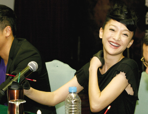 對(duì)于遲到一個(gè)小時(shí),周迅聰明地表示了道歉:“對(duì)不起,今天因?yàn)槎萝噥磉t了。南京太繁華了,所以路上車比較多!眲傉f完就被話筒里自己的聲音“嚇到”:“我今天聲音怎么那么渾厚啊。”嬌小玲瓏的周迅是《風(fēng)聲》里的女一號(hào),劇本修改之后,她的戲份和角色的復(fù)雜度遠(yuǎn)超李冰冰(飾演李寧玉)。對(duì)此周迅直呼幸運(yùn),“看到一本很好的劇本,演員都會(huì)比較激動(dòng),愿意用心去演。” 片中周迅一開場(chǎng)就是一種醉醺醺的狀態(tài),談到拍戲的秘訣,周迅笑道:“就是喝酒,拍那幾場(chǎng)戲的時(shí)候每天都會(huì)去喝酒。每天導(dǎo)演一到現(xiàn)場(chǎng)就會(huì)問:‘喝了嗎?’”蘇有朋也在一旁揭發(fā),“她在片場(chǎng)就是喝高了找狀態(tài)的樣子!敝苎竿嘎,與李冰冰飆戲的13分鐘十分過癮(但后來被刪短),兩人單純的姐妹情發(fā)生改變,周迅說服李冰冰去揭發(fā)自己,李冰冰陷入矛盾,這場(chǎng)戲?qū)τ谥苎负屠畋际蔷薮蟮目简?yàn)。周迅片尾的那段獨(dú)白,尤其感人至深,至今周迅還能倒背如流。 華誼兄弟上市,很多明星大腕如馮小剛黃曉明有股份,作為華誼一姐的周迅卻沒沾一點(diǎn)邊,問她原因,她一臉無辜狀:“因?yàn)槲也欢?”周迅坦承:“對(duì)于股票什么的,我一點(diǎn)也不懂,我不懂的東西不敢碰,自己也從來不炒股。”至于理財(cái),周迅更是一無所知,“我平時(shí)都不管錢的,我錢都是給爸媽在管,自己只留點(diǎn)零用錢什么的。”