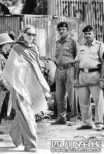 正在印度拍攝新片《Eat, Pray,Love》的好萊塢巨星茱莉亞·羅伯茨,27日穿上印度女士傳統(tǒng)服飾,在當(dāng)?shù)乇辈康男〈迩f開工,惹來(lái)大批記者緊貼追訪。有村民為了一睹金像影后的風(fēng)采,爬到樹上及天臺(tái),當(dāng)中包括小朋友。當(dāng)?shù)鼐揭矅?yán)陣以待,派出五十名手持竹棍的警員到場(chǎng)保護(hù)茱莉亞出入并維持秩序。而為免拍攝內(nèi)容外泄,電影公司在片場(chǎng)掛上黑布。 聞聞