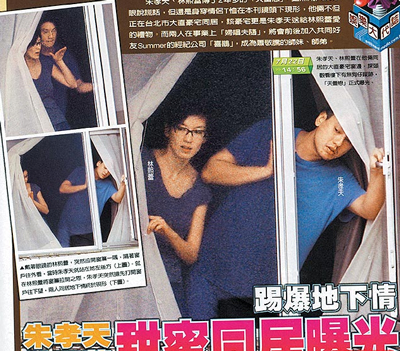 臺灣《蘋果日報(bào)》消息,《壹周刊》是在2007年7月出刊的雜志,以“踢爆地下情,朱孝天、林熙蕾甜蜜同居曝光”為標(biāo)題,報(bào)導(dǎo)2人在大直豪宅同居,還拍到他們身穿情侶T恤在10樓住處落地窗前聊天的畫面,遭蕾蕾告上法院。