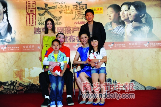 昨日,即將于7月22日在內(nèi)地、香港、臺灣同步上映的《唐山大地震》在搜狐網(wǎng)開通了電影官方網(wǎng)站,導演馮小剛攜主演徐帆、張國強等出席發(fā)布會與網(wǎng)友一同分享了他們關于30年前的記憶,并首度向外界公布了影片中“張國強、徐帆一家”的全家福照片。而在隨后的采訪中,馮小剛則否認了徐帆因為是自己妻子才得以出演《大地震》的傳聞,“徐帆的水平在那兒擺著,她撐起了這部電影的魂!蓖瑫r,對于影片的票房,馮小剛再次放出豪言,“誰不服,就和《大地震》同天上映!”