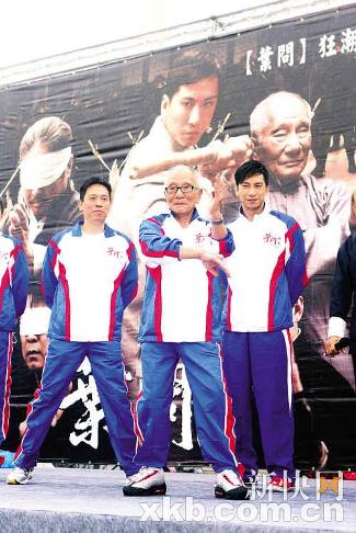 電影《葉問前傳》宣傳,前天在臺北市府廣場舉行千人打詠春活動,葉問親生兒子葉準、男主角杜宇航、女主角陳嘉桓到場出席。早前曾爆出葉準狠批甄子丹“過河拆橋”,原以為甄子丹登門澄清,事件已告一段落,不料80多歲的葉準老先生,其實仍然對甄子丹頗有微言!