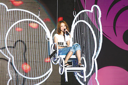 “蔡依林花蝴蝶慶功演唱會(huì)”前天在臺(tái)中市市民廣場(chǎng)舉行。唱片公司不惜重金,讓她坐在蝴蝶造型的座椅上,懸在十米高空演唱,嚇得她連連尖叫。其間,蔡依林還收到一封唱片公司企宣部寫的感人信件,讓她在臺(tái)上哭成淚人兒。