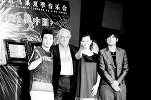 昨天,宋祖英首次和三位重量級(jí)嘉賓多明戈、周杰倫、郎朗同時(shí)出現(xiàn)在鳥巢,為今晚的音樂會(huì)造勢(shì)。
