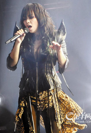 怎樣傳遞“吶喊的情緒”?阿妹介紹了“最重要的三個要素”,一是“手勢”,二是“甩頭”,三是“嘶吼”。帶動著全場觀眾邊唱邊跳的阿妹,似乎整場都不覺得累,歌舞之余,還不時對現場大聲喊道:“我所有的力量和勇氣都來源于你們!”雖然曲目耳生,但善用以上三招的阿妹依舊點燃了現場激情,演唱會上一度出現萬人大合唱的情景。章琰