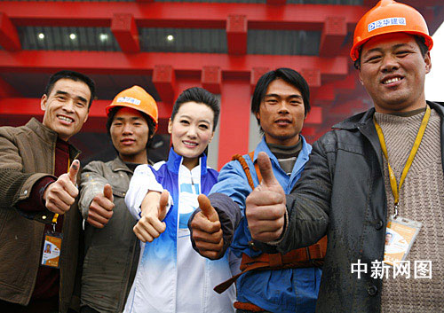 活動最后,譚晶把志愿者徽標(biāo)帶到工人們的衣服上。她說:“世博館是大家建設(shè)而成的,今天能夠見到大家,真的很開心,雖然只是短暫的時間,但依然可以看到大家的辛苦,我們每一個人都應(yīng)該謝謝他們這些幕后英雄!